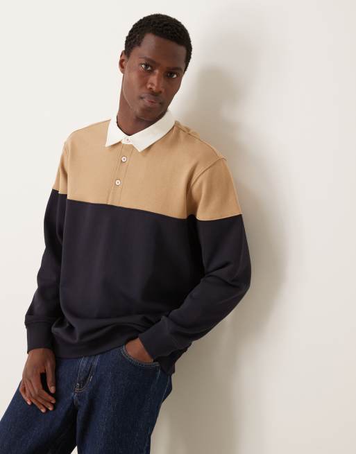 Mango – Granatowa koszulka polo z długimi rękawami i kontrastową wstawką