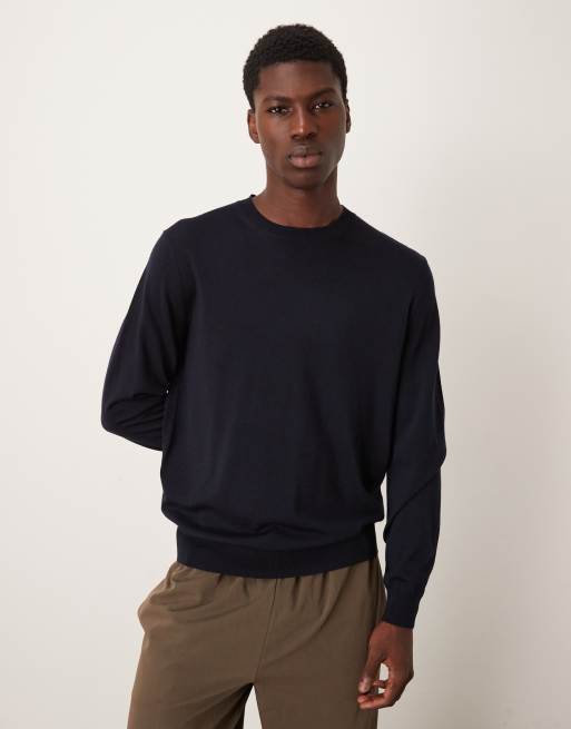 Mango – Granatowy wełniany sweter z okrągłym dekoltem