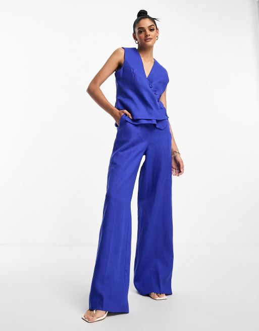 Mango – Kobaltowe spodnie z prostymi nogawkami i zaszewkami z przodu, część zestawu