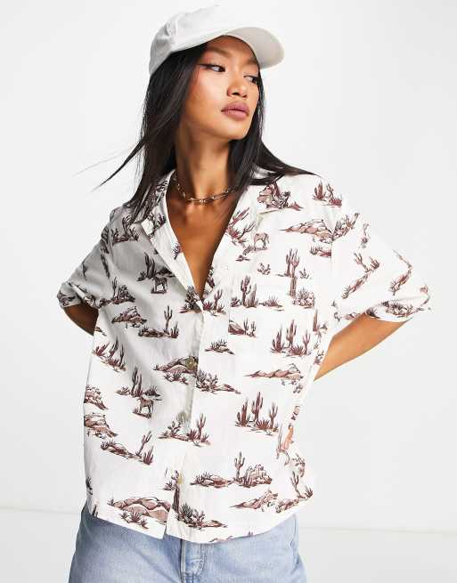 Mango – Koszula z wykładanym kołnierzykiem i zapięciem na guziki we wzór w konie