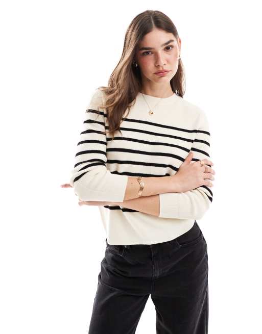 Mango – Lekki biały sweter w paski