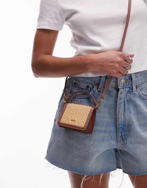 Mango – Mała jasnobrązowa torebka z plecionej rafii