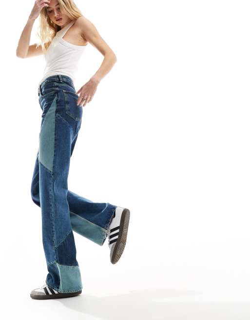 Mango – Niebieskie jeansy z prostymi nogawkami w patchworkowy wzór