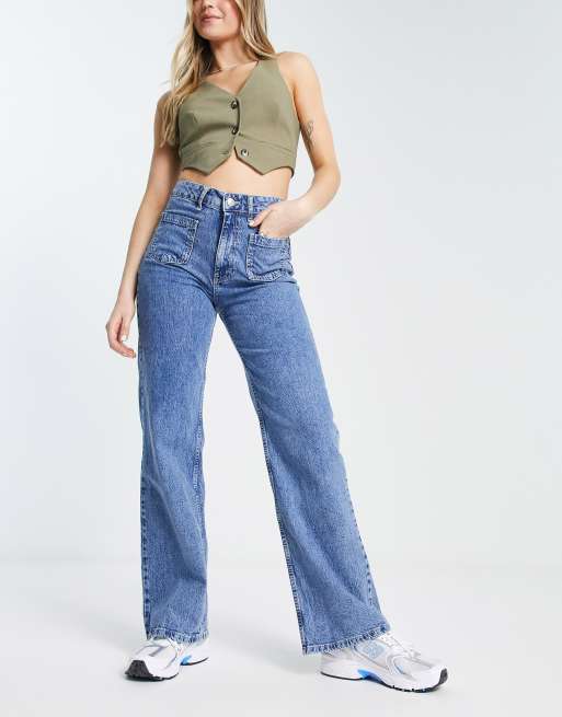 Mango – Niebieskie jeansy z szerokimi nogawkami