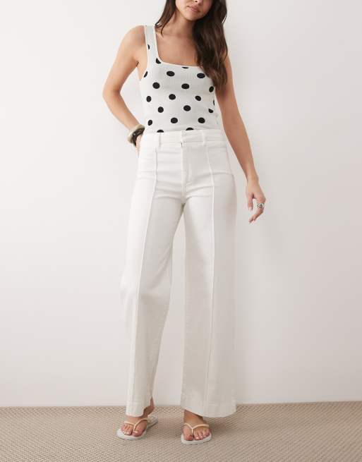 Mango – Paloma – Białe jeansy z podwyższonym stanem i szerokimi nogawkami