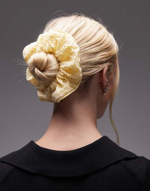 Mango – Pastelowożółta gumka do włosów z haftowanym kwiatowym wzorem
