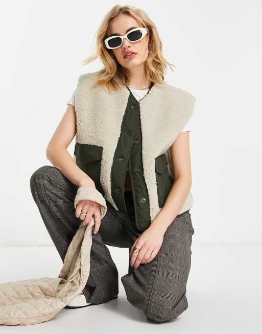 Mango – Pluszowy bezrękawnik zapinany na guziki w kolorze khaki
