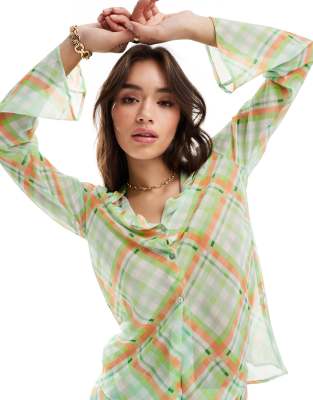 Mango – Pomarańczowo-zielona koszula w kratkę, część zestawu