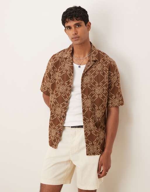 Mango – Rdzawa koszula z domieszką bawełny w haftowany wzór