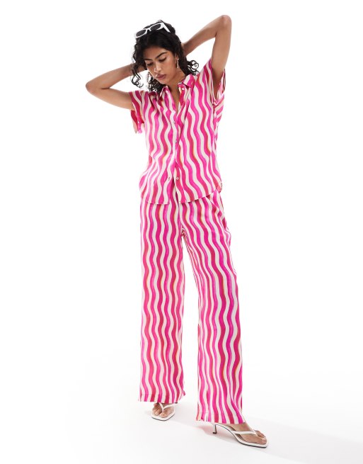 Mango – Różowe spodnie w falowane paski, część zestawu