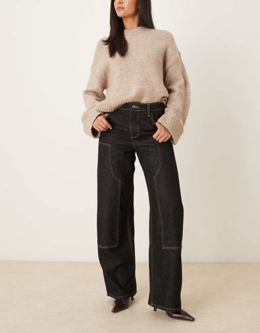 Mango – Sandra – Jeansy z bawełny 100% w spranym czarnym kolorze z baryłkowatymi nogawkami i ozdobnymi szwami