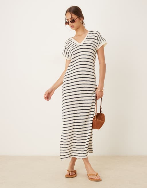 Mango – Sukienka maxi w czarno-białe paski z kołnierzykiem polo
