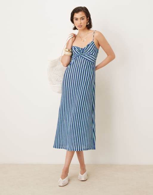 Mango – Sukienka midi na ramiączkach we wzór w paski