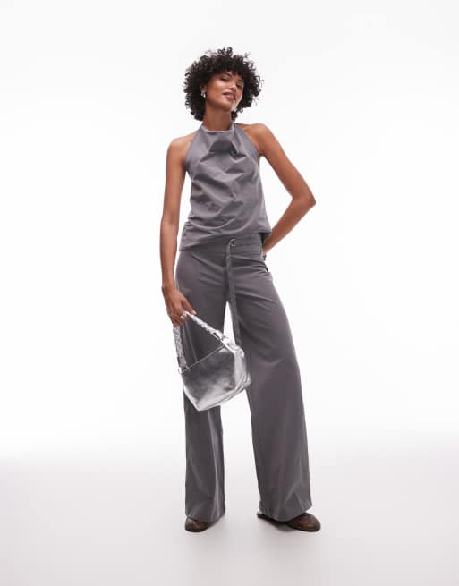 Mango – Szare spodnie z bengaliny z prostymi nogawkami i wiązaniem z pierścieniem, część zestawu