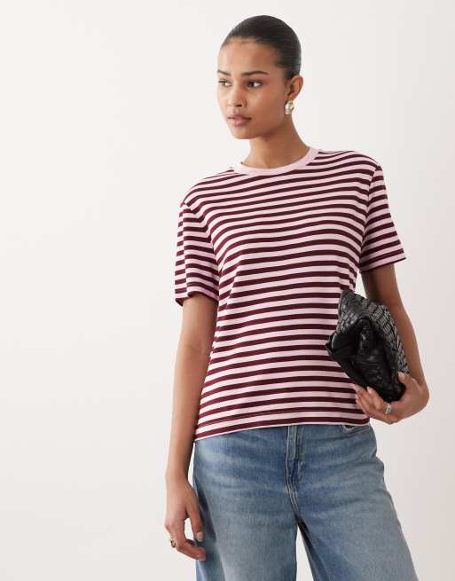 Mango – T-shirt z okrągłym dekoltem w różowo-bordowe paski