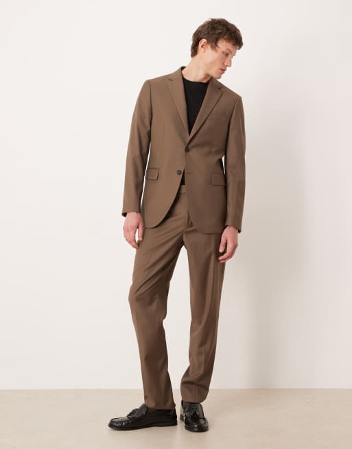Mango – Turin – Brązowy zestaw z wełny 100%: dopasowane spodnie i marynarka