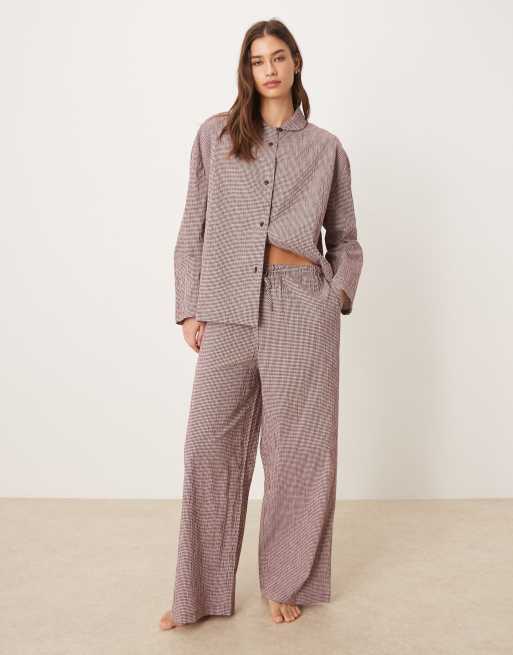 Mango – Wiśniowoczerwona dwuczęściowa piżama w kratkę vichy