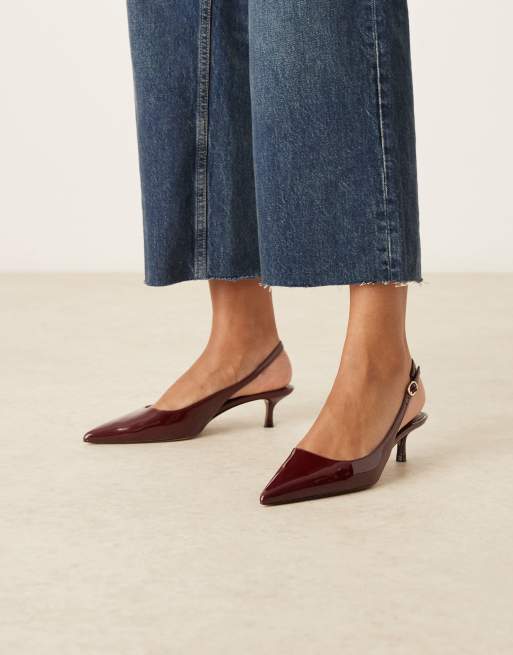 Mango – Wiśniowoczerwone lakierowane buty na obcasie z paskami za piętą i noskami w szpic