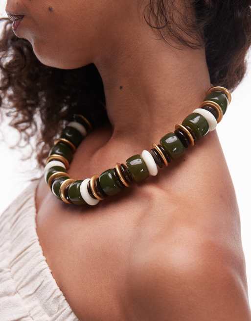 Mango x Kaia Gerber – Zielony naszyjnik z mieszanych koralików