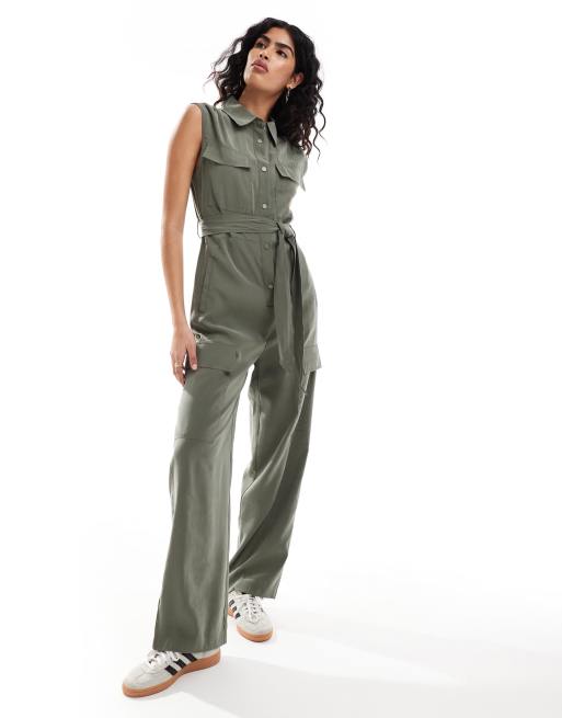 Mango – Zapinany na guziki kombinezon bez rękawów w kolorze khaki