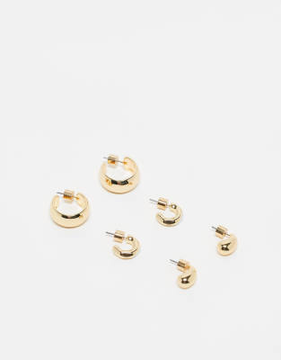Mango – Zestaw 3 par kolczyków różnej wielkości, w kolorze złotym