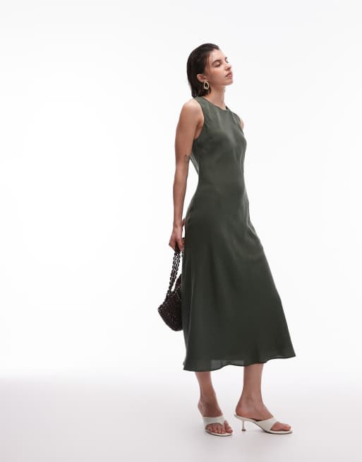 Mango – Zielona sukienka midi z satyny
