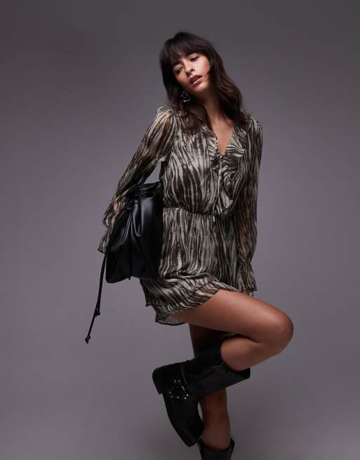 Mango – Zielona sukienka mini we wzór w paski zebry