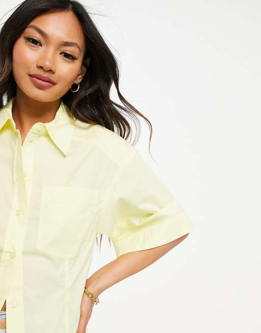 Mango – Żółta popelinowa koszula z krótkim rękawem, część zestawu