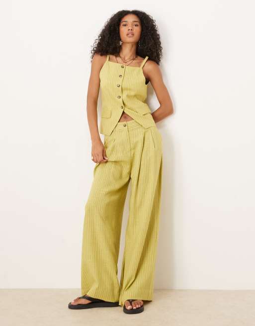 Mango – Żółte spodnie z szerokimi nogawkami, część zestawu