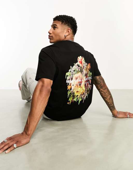 Marshall Artist – Acid Flora – Czarny T-shirt z nadrukiem kwiatowym na plecach