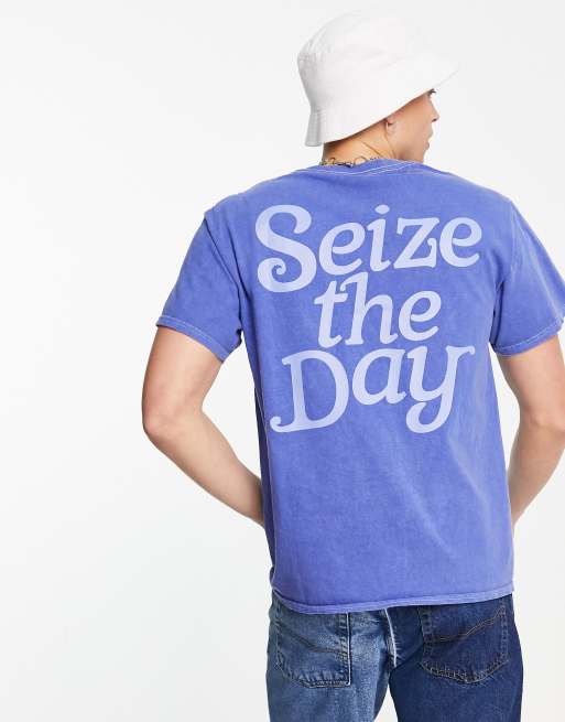 Mennace – Niebieski T-shirt z napisem na plecach