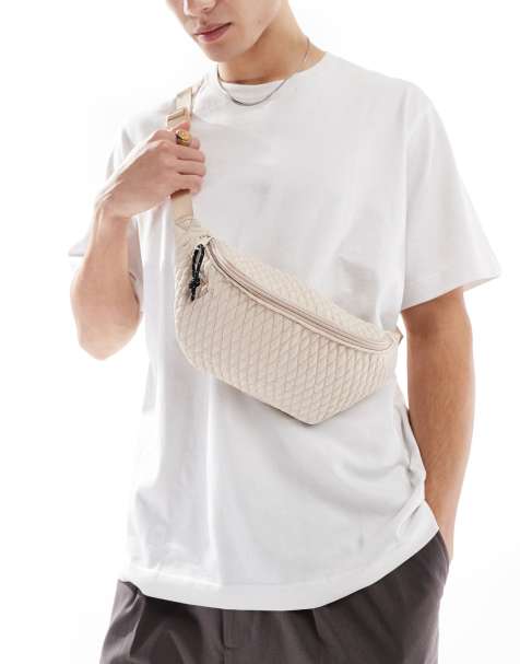 ASOS DESIGN – Torebka crossbody z imitacji skóry z ozdobnym paskiem w kolorze écru