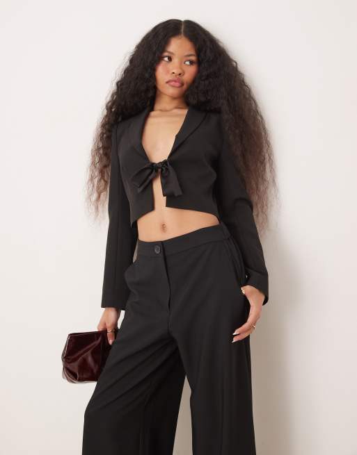Miss Selfridge Petite – Czarna krótka marynarka z ozdobną wstążką
