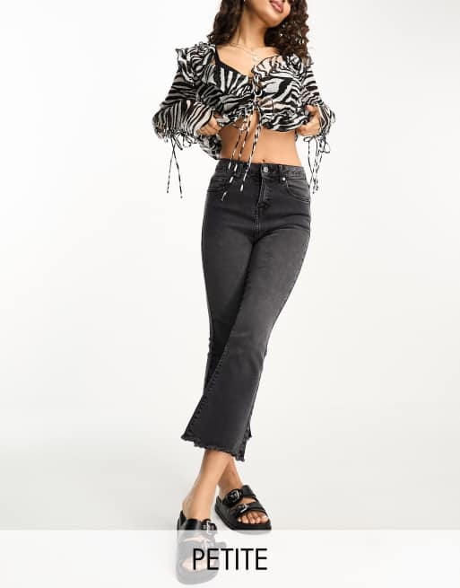 Miss Selfridge Petite – Czarne jeansy dzwony o krótkim fasonie