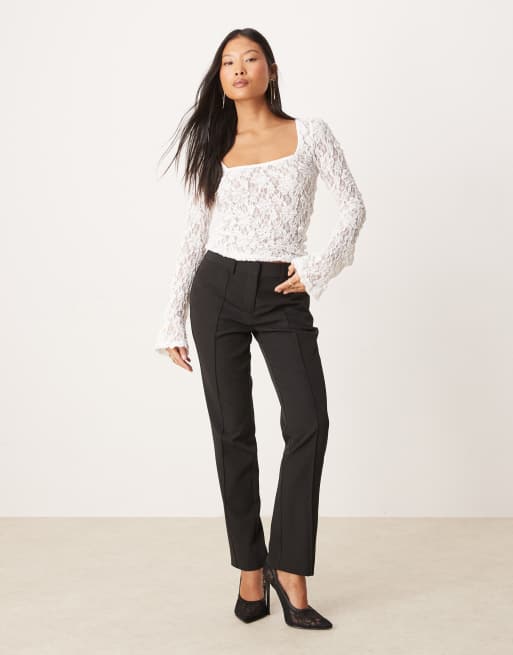 Miss Selfridge Petite – Czarne spodnie cygaretki z ozdobnymi przeszyciami