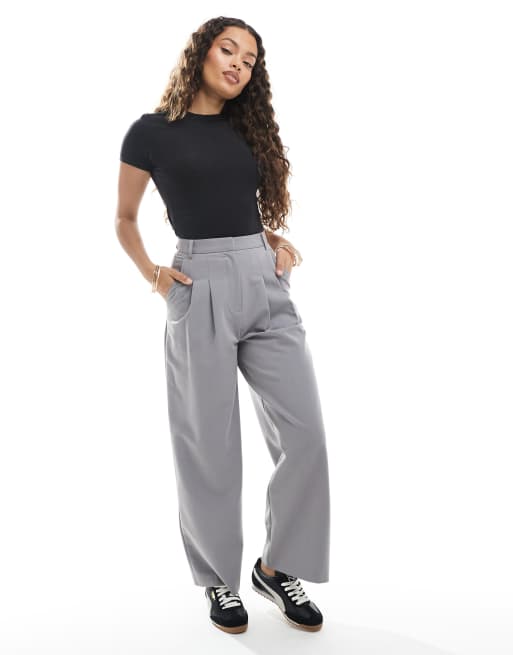 Miss Selfridge Petite – Jasnoszare eleganckie spodnie z szerokimi nogawkami