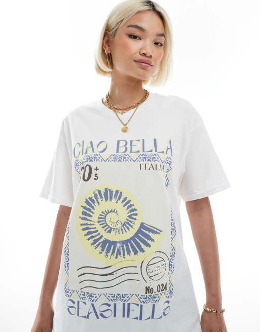 Miss Selfridge – Biały T-shirt oversize z nadrukiem