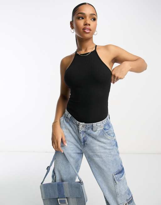 Miss Selfridge – Body na ramiączkach z dekoltem typu halter w kolorze czarnym