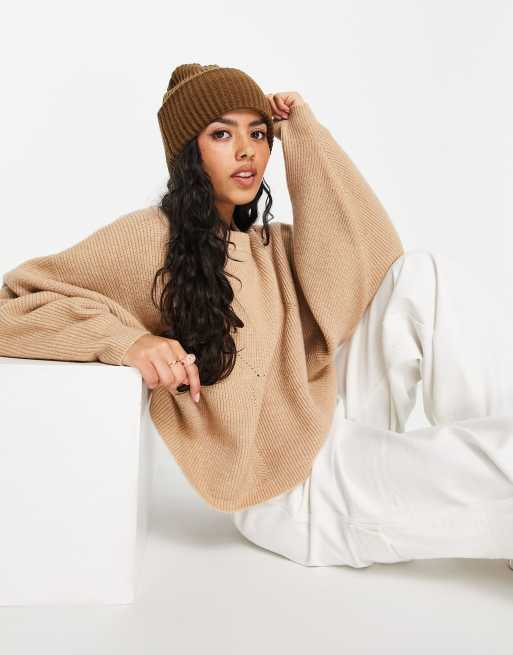 Miss Selfridge – Camelowy sweter z długim nietoperzowym rękawem