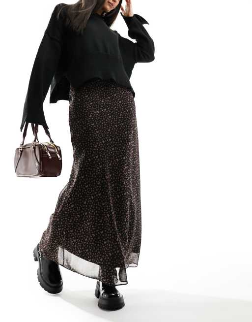 Miss Selfridge – Cięta ze skosu szyfonowa spódnica maxi we wzór w pączki róż