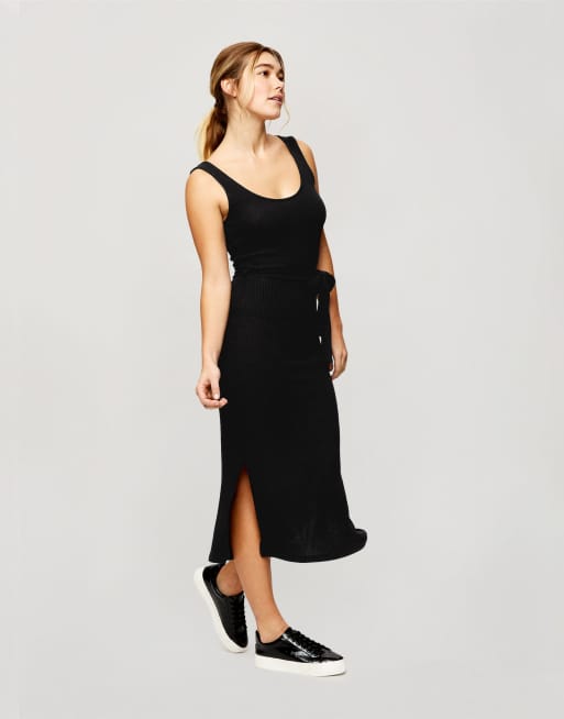 Miss Selfridge – Czarna prążkowana sukienka mini z dekoltem w kształcie litery U