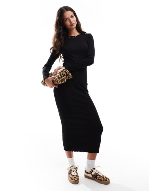 Miss Selfridge – Czarna sukienka midi z długimi rękawami