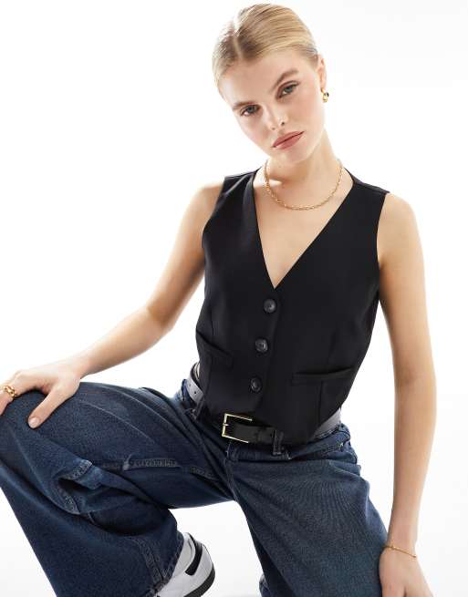 Miss Selfridge – Czarna zapinana na guziki kamizelka