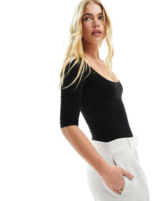 Miss Selfridge – Czarne body z rękawami 3/4 i dekoltem w kształcie litery U