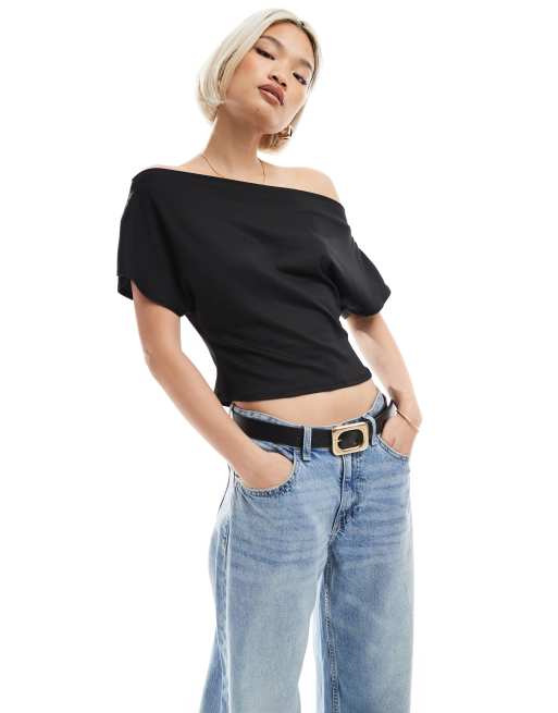Miss Selfridge – Czarny top z odsłoniętymi ramionami