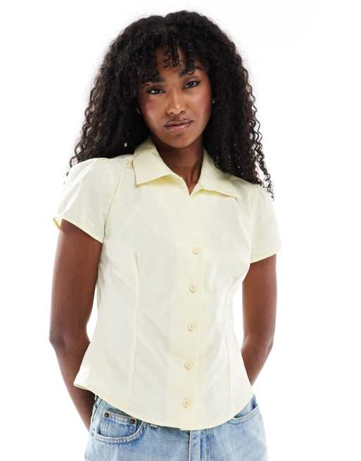 Miss Selfridge – Dopasowana bladożółta koszula z krótkim rękawem