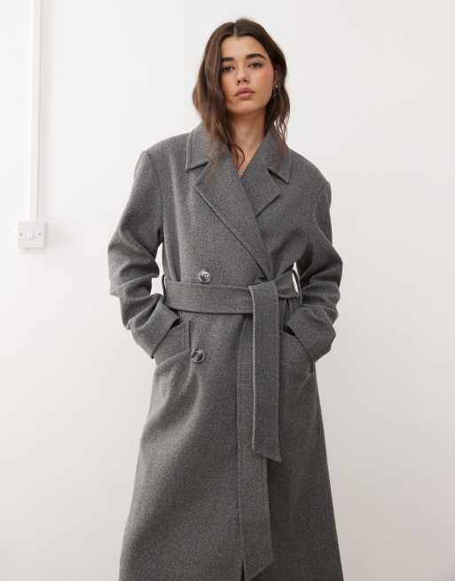 Miss Selfridge – Elegancki płaszcz kopertowy z paskiem w kolorze szarego melanżu