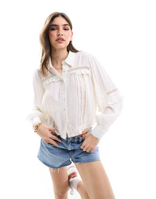 Miss Selfridge – Fakturowana koszula kowbojska w kolorze kości słoniowej