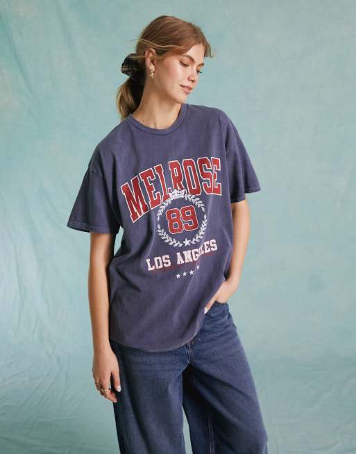 Miss Selfridge – Granatowy T-shirt z krótkim rękawem i grafiką "Melrose"