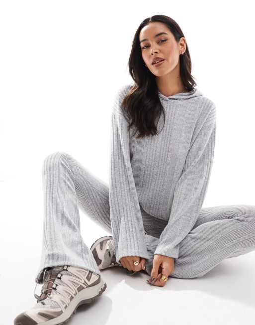 Miss Selfridge – Gruba szczotkowana prążkowana bluza oversize z kapturem w szarym kolorze